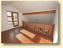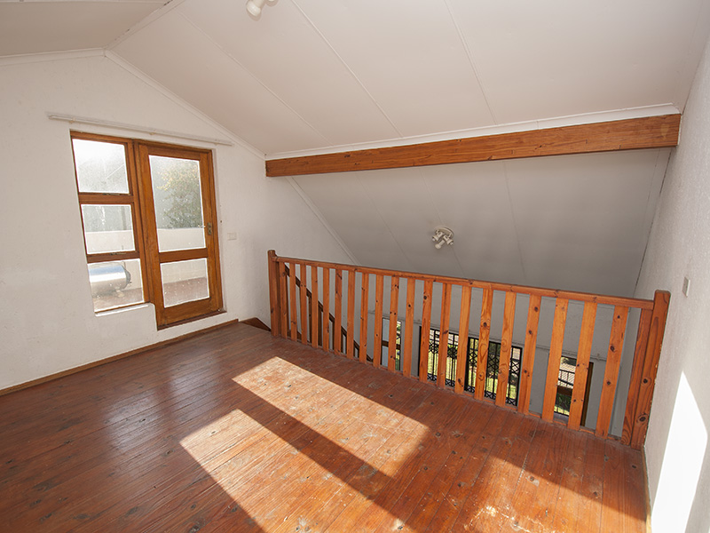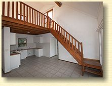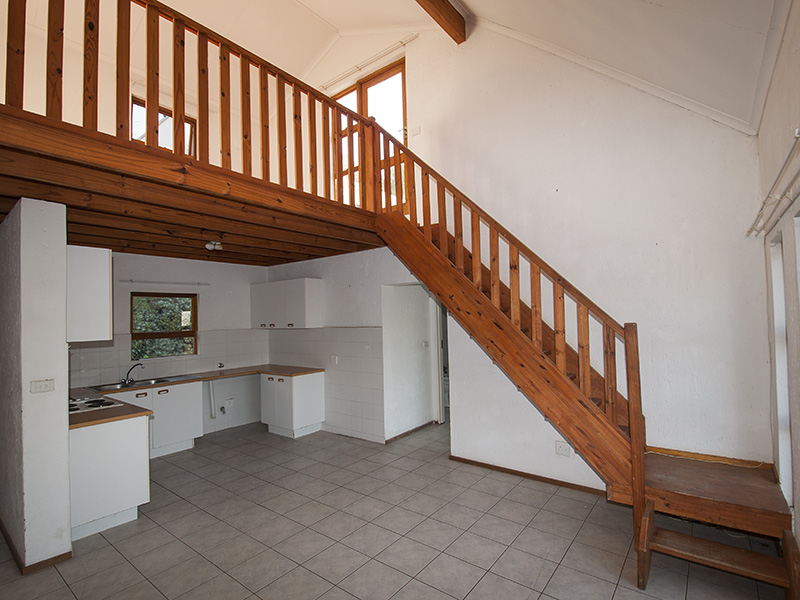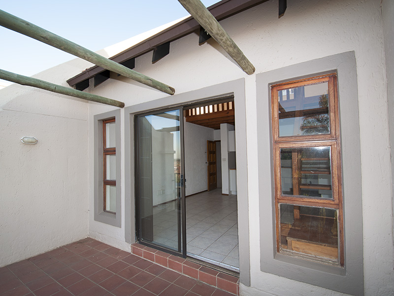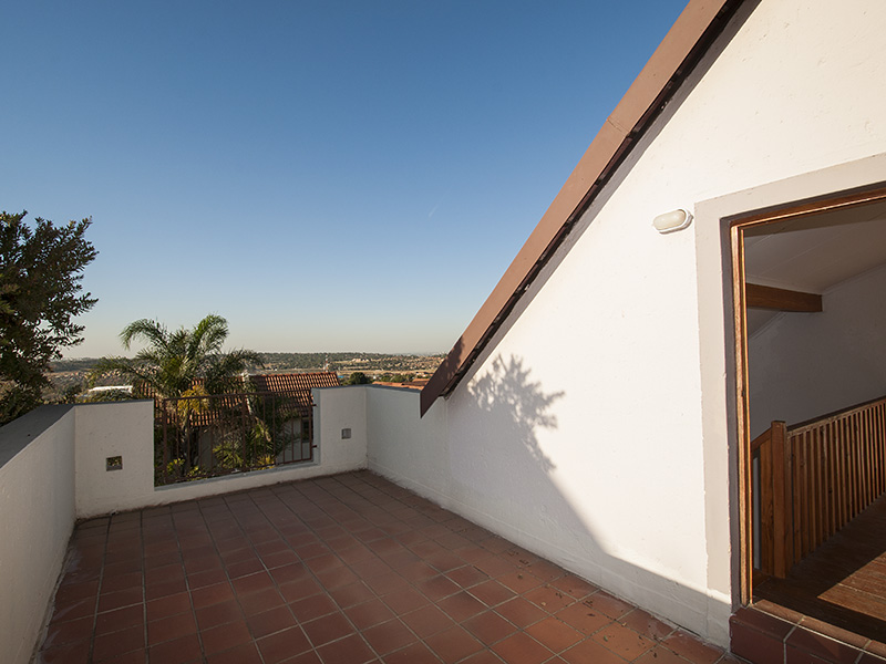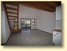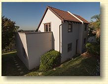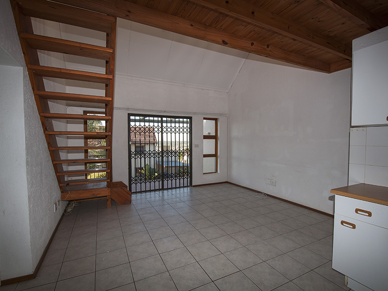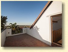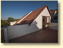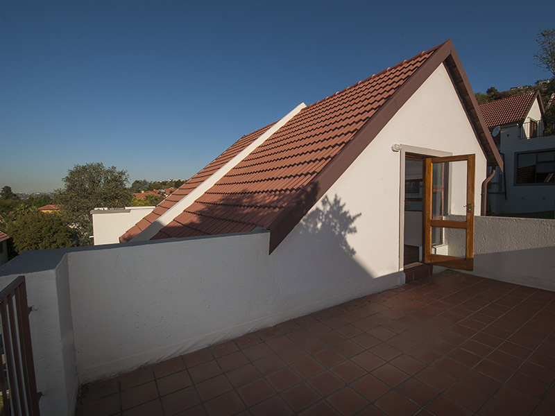 This is a floor plan of the ground floor of the unit. The kitchen has extra built in cupboards and the living area looks out through sliding doors onto the pergola patio and garden. This is a plan of the loft room and roof terrace. The terrace has a wonderful view of northern Johannesburg, all the way to the Magaliesberg Mountains. The living area of the unit is 65 mē and the roof terrace is 18 mē. Return to The Summit page here